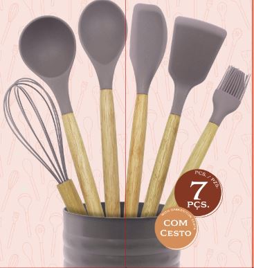 KIT JUEGO DE COCINA DE 7 PIEZAS DE SILICONA CON MANGO DE MADERA (PRODUCTO PREMIUM)