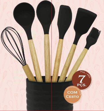 Este juego de cocina está compuesto por 7 piezas fabricadas con madera y silicona de alta calidad, diseñadas para hacer que la preparación de alimentos sea más fácil y eficiente.