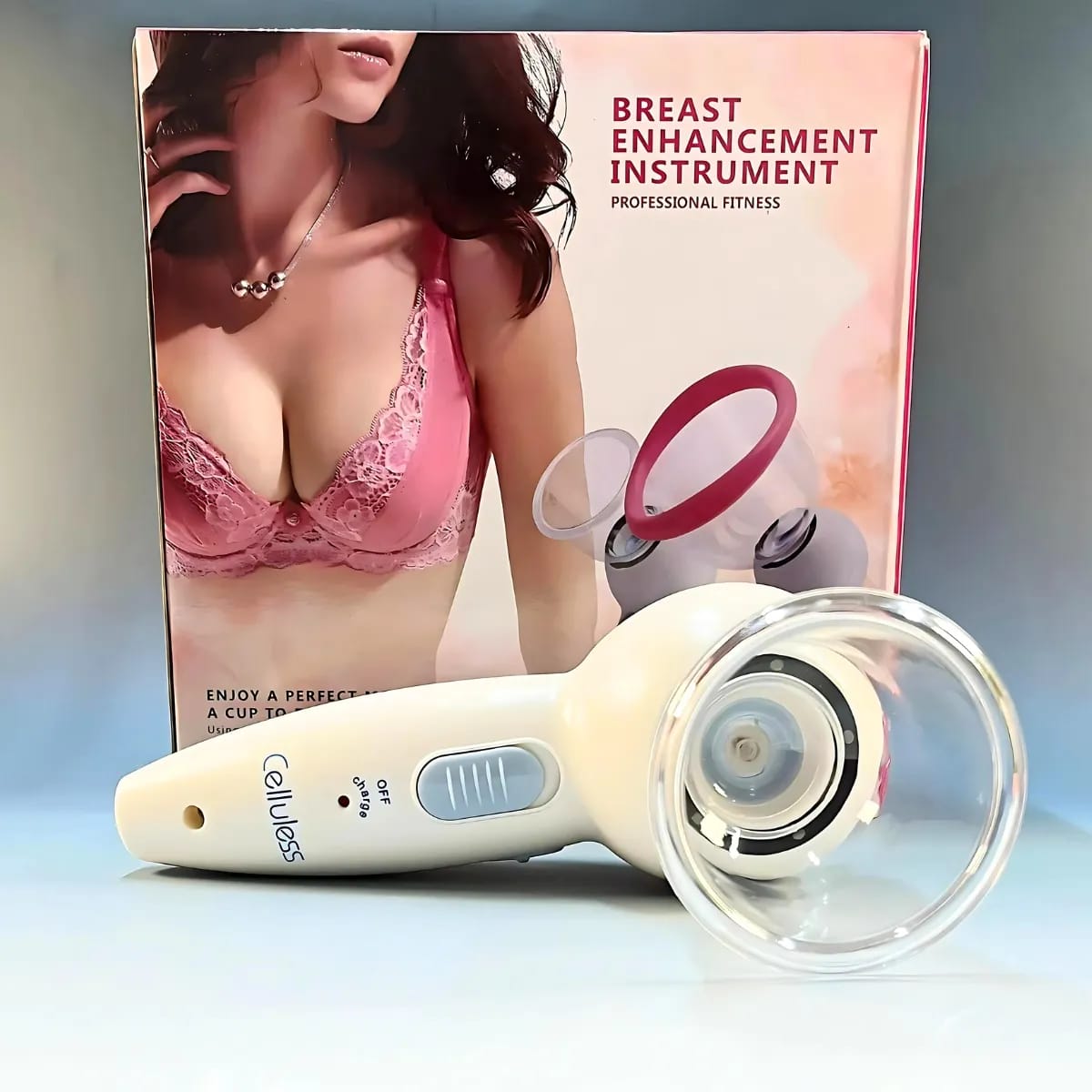 Celluless, un dispositivo portátil de vacumterapia diseñado principalmente como un masajeador eléctrico anticelulitis, "instrumento de realce de senos" (Breast Enhancement Instrument), múltiples propósitos de cuidado corporal.